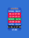 İmsak, Sabah Namazı, Güneş, İşrak, Öğle kerahati, Öğle, İkindi, Akşam kerahati, Akşam, Yatsı, Geceyarısı, Teheccüt, Seher